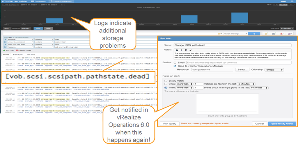 There is also the ability to dig deeper into the problems by using vRealize Log Insight which can send alerts into vRealize Operations 6.0 if certain problems arise and allow custom reporting and alerting for partners and bigger customers who are looking for custom reporting and deep analysis.