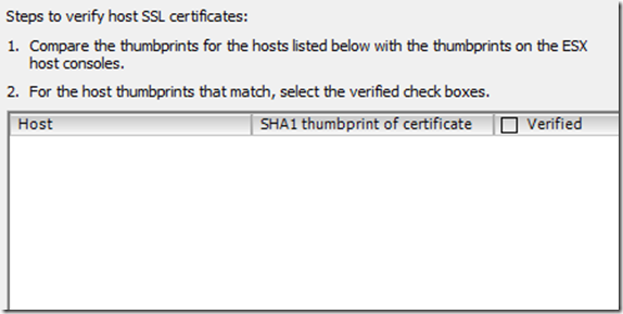 • Upgrade your hosts to ESXi 5: This can be done in numerous ways, the one major snag I hit was that 80% of my hosts needed their BIOS updated to the latest version to be able to run ESXi 5. Not sure when they added this as ESXi 5 beta worked on them so they must have changed something last minute before GA but I wrote about all my steps in my posting PSOD while trying to install vSphere ESXi5 on a Dell PowerEdge 1950 and OMSA 6.5 installation. As the title states there is also a currently unsupported version of OMSA for ESXi 5 (OMSA 6.5) which I would highly recommend installing prior to upgrading your host and the new variable to allow you to connect to the host via the Dell Management Console (DMC). Also don’t forget to verify your hosts so that HA is enabled, i spent a bit of time scratching my head wondering why the HA agents were failing on my hosts until i remembered the step to verify them, Administration->vCentre Server Settings-> SSL –> verify the hosts in the bottom box clip_image001