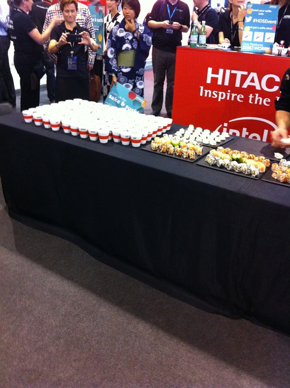 I then made my way back to the solutions exchange for the hall crawl where Hitachi were serving up sake and sushi at their stand which is two of my favourite things so I had to make sure I got myself some and they even gave us nice sake cups which I will personally use for a double espresso cup. A big thanks to Paul Meehan too for chatting us through their solution.